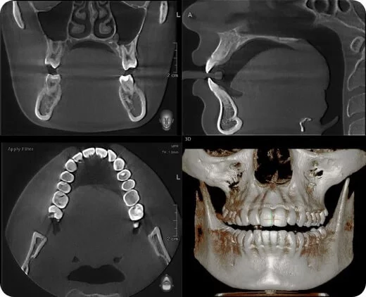 Конусно-лучевая компьютерная томография (КЛКТ) — это современный метод диагностики, который использует конусные лучи X-излучения для получения высококачественных трехмерных изображений ваших зубов и челюстей. Этот метод помогает врачам быстро и точно определить проблемы и планировать эффективное лечение. Процедура безболезненная и занимает всего несколько минут, обеспечивая минимальное излучение в сравнении с традиционной компьютерной томографией.