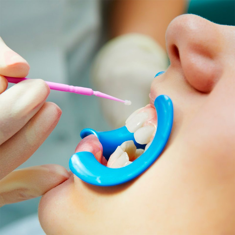 Фторирование — отличная процедура для снижения чувствительности зубов. Содержащиеся в составах препаратов дополнительные добавки замедляют образование налета.