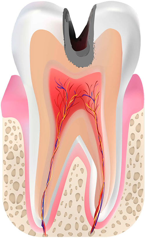 Инфекционный процесс будет распространяться вглубь зуба, что может привести к развитию воспаления нерва зуба (пульпиту) или вовсе к его потере. Кариозный процесс, перешедший уже на пульпу, вызывает острую боль, в том числе ночную. И лечение зуба уже не такое простое.